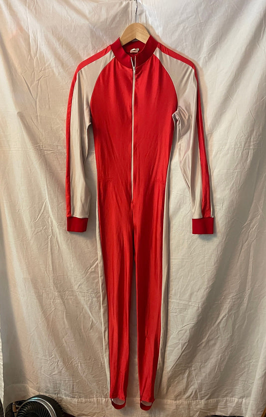 Size EU182cm (Men's large) 1980s Terinit Lycra Full-Length X-C Ski Suit - Red/Silver - FINLAND!!!