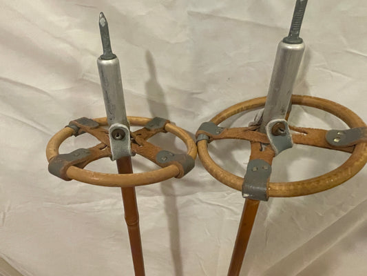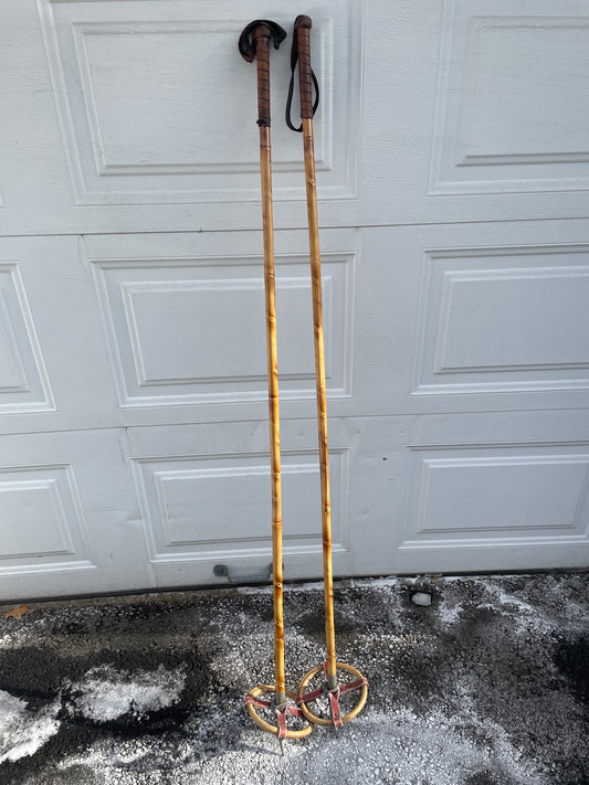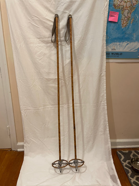 135cm Liljedahl Bamboo Cross-Country Ski Poles - Mid 1960s - Leather/Wicker Ring Baskets!!!