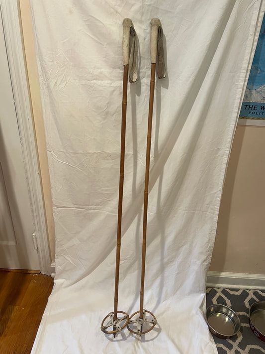 140cm Vintage Bamboo Cross-Country Ski Poles from Norway - Leather Baskets - WOW!!!