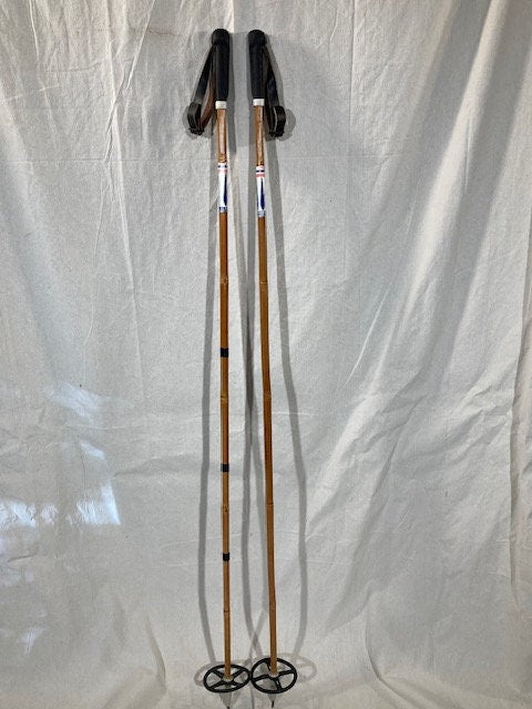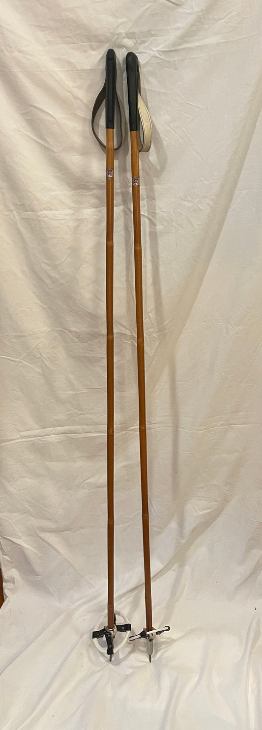 145cm Norwegian Bamboo Cross-Country Ski Poles - Wicker/Leather Baskets!