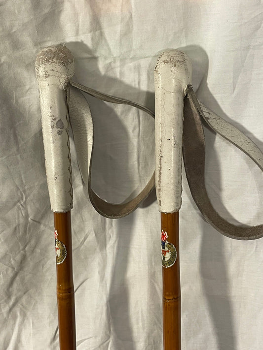 135cm Vintage Bamboo Cross-Country Ski Poles from NORWAY NORWAY NORWAY