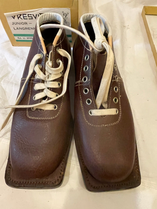 Size 35 (US Women's 4.5) Jette of Norway Early 1970s LEATHER Cross-Country Ski Boots - New Old Stock - New New New
