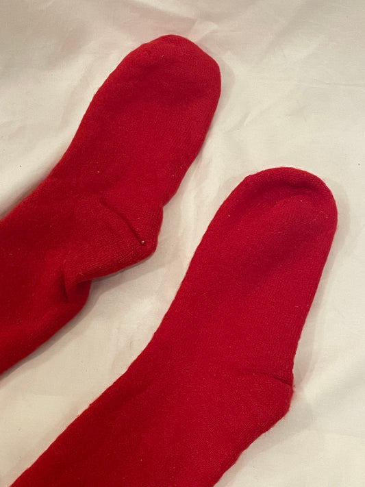Size M - Vintage Cross-Country Ski Wool Knicker Socks - Red with White Stripes - 1960s
