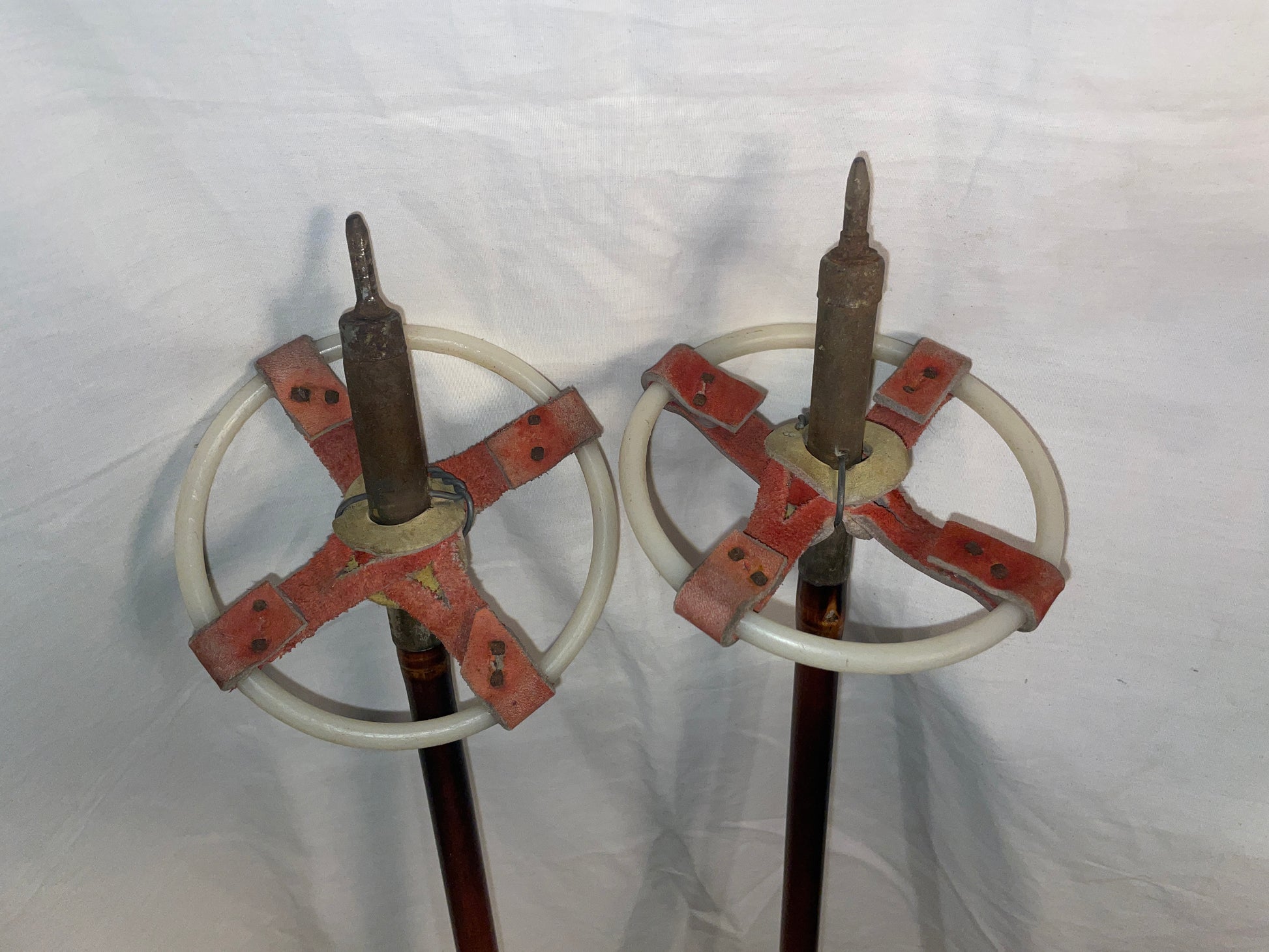 125cm Järvinen Bamboo Cross-Country Ski Poles - late 1960s - FINLAND - LEATHER LEATHER