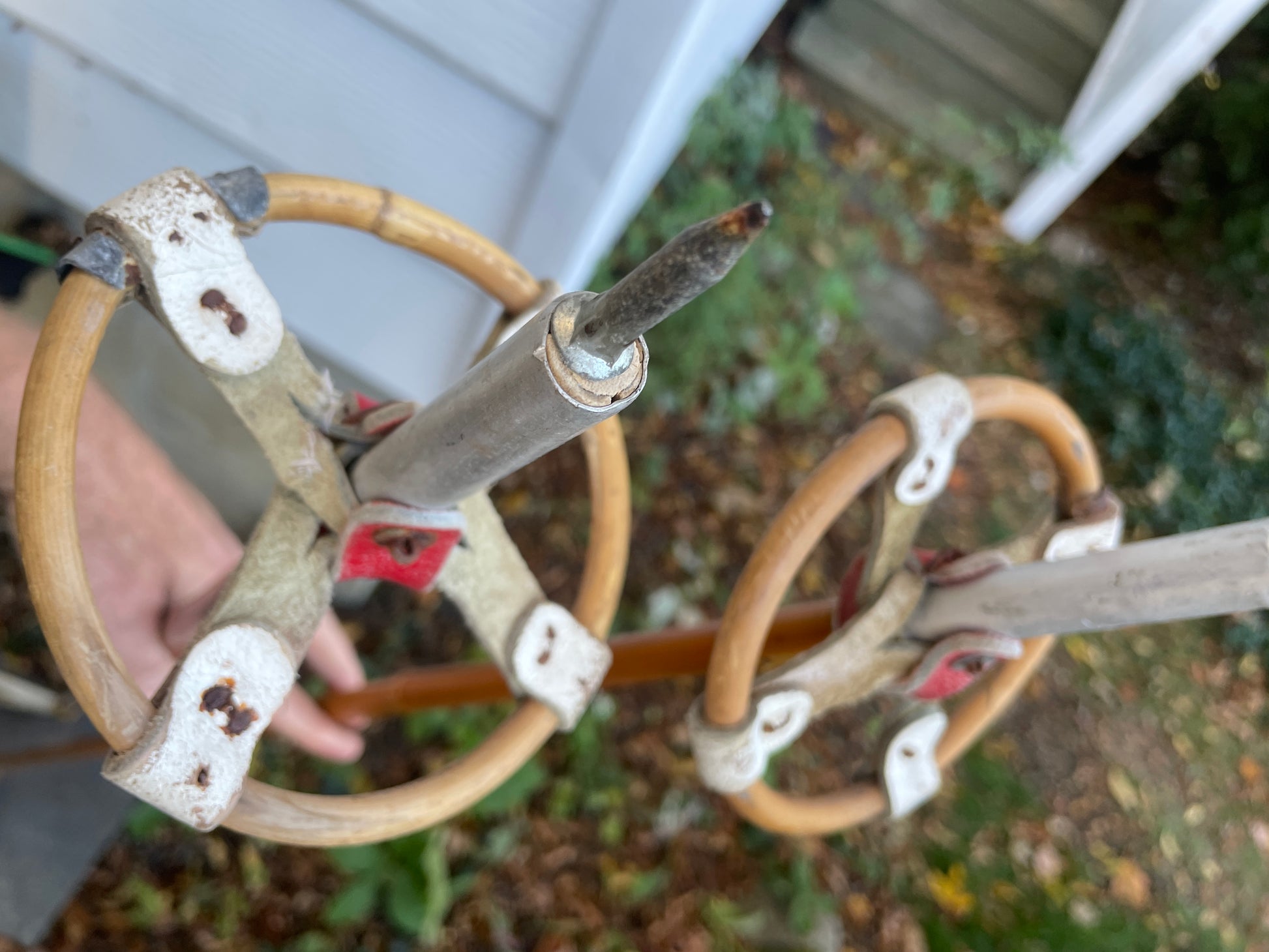 140cm Liljedahl Bamboo Cross-Country Ski Poles - 1960s - Leather/Wicker Ring Baskets!!!