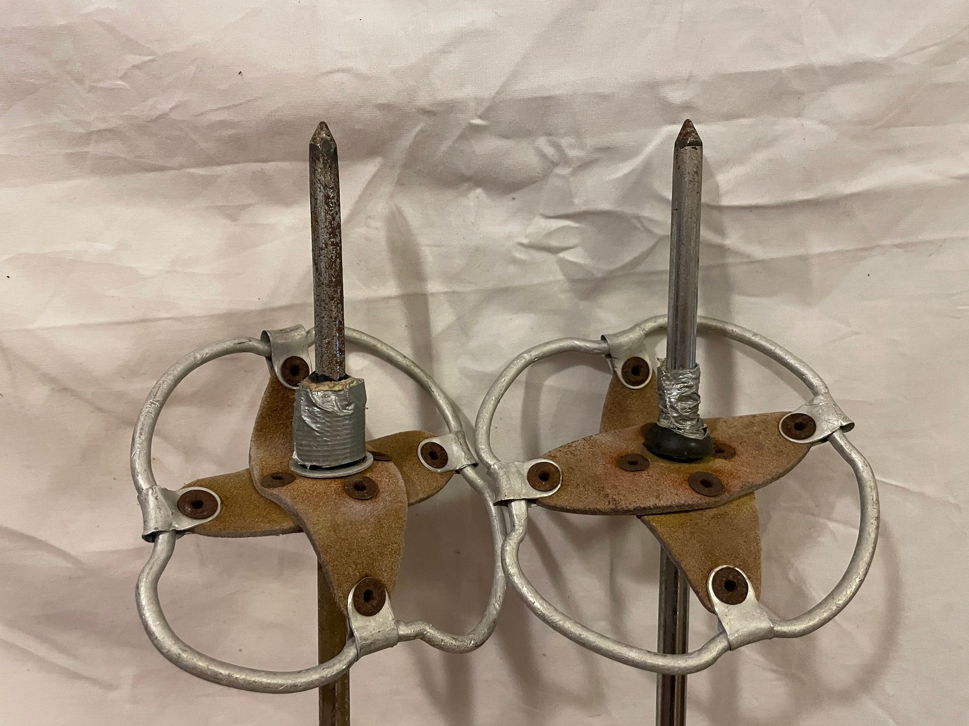 Really cool pair of steel alpine ski poles recently acquired on a trip to Finland. Steel was a popular material for ski poles after bamboo phased out and before aluminium became dominant. These poles have had a few dings, as one would expect given their age, but the straps and baskets are in good shape and will look great on display or even on the slopes!