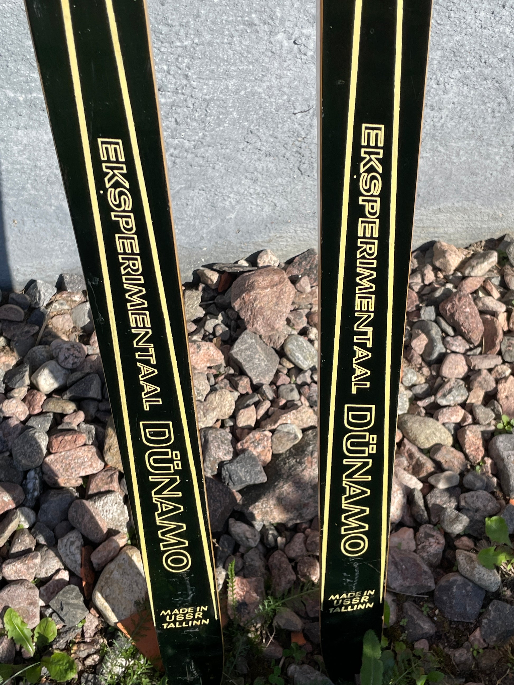 The Tallinn ski brand battled with Visu from Parnü for supremacy in Estonia during Russian occupation. This nice example of "Eksperimentaal Dünamo" skis was purchased from a seller in Estonia last winter. Estonia is fast moving forward embracing western values and technology, but there are many areas that still present a window into Soviet times. These skis were acquired in one of those places. Quite an experience!
