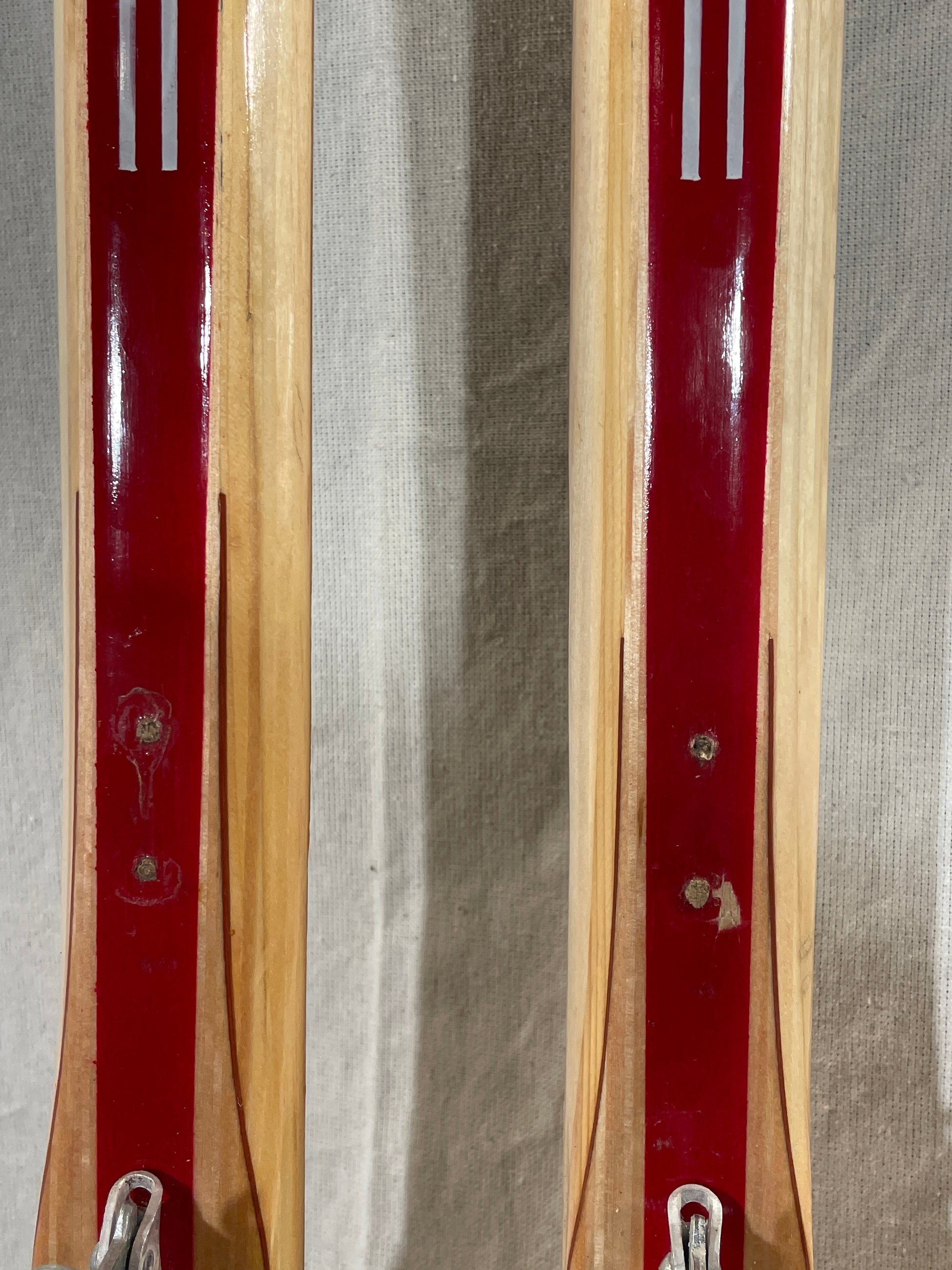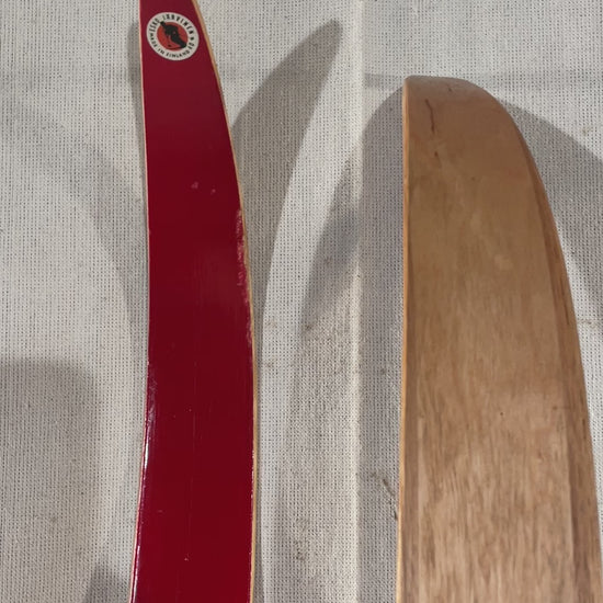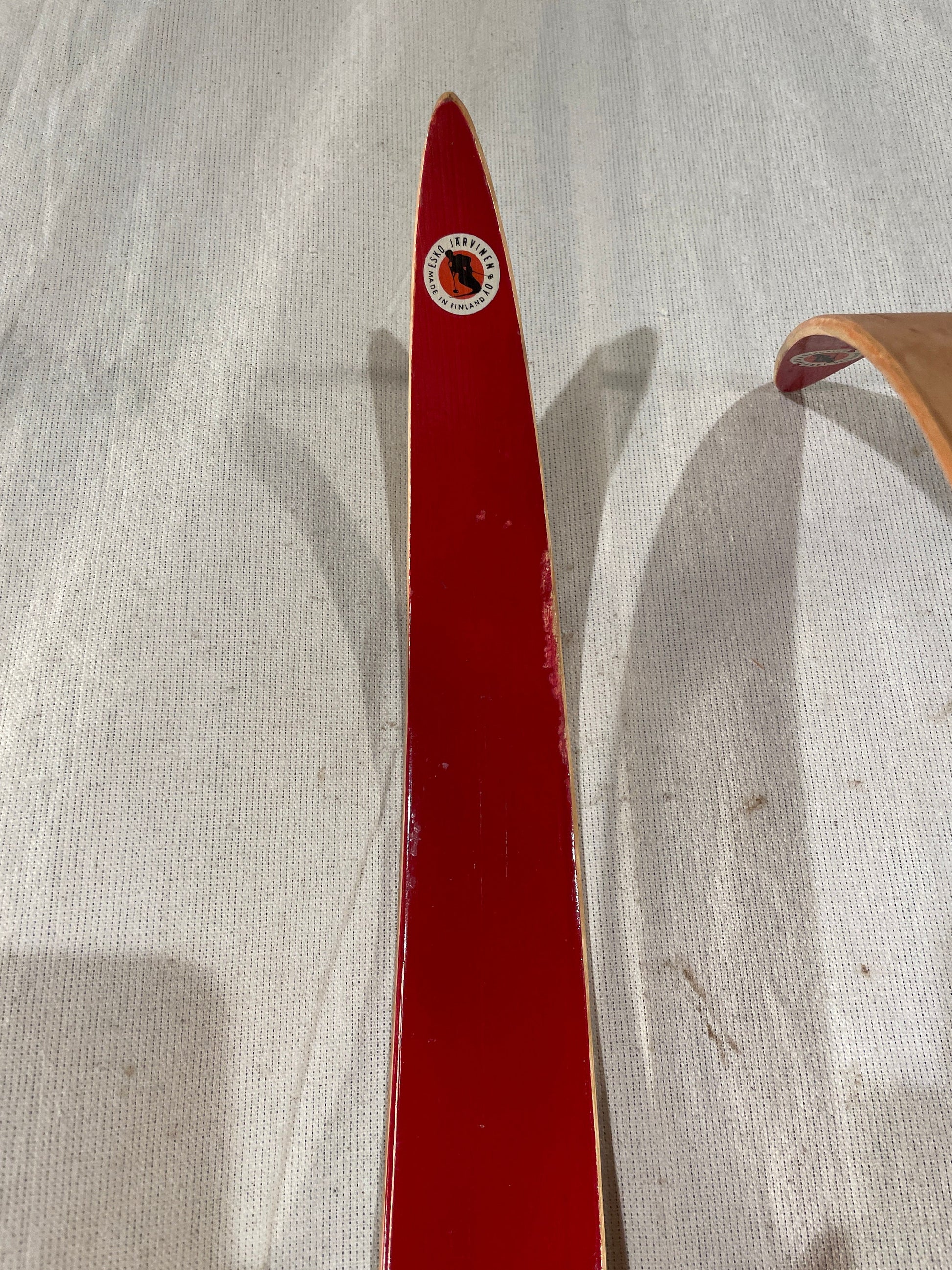 Wow, these are nice skis. And super light - just a few grams heavier than modern race skis. This pair is an example from the apex of the woodski era, and also at the end of it. Birch base skis were the lightest on the market, and preferred in cold conditions. The fact that these skis have never been tarred speaks to this - the very cold and dry conditions that exist in Finland require less protection against moisture. Plus tar adds weight, and every gram counts!