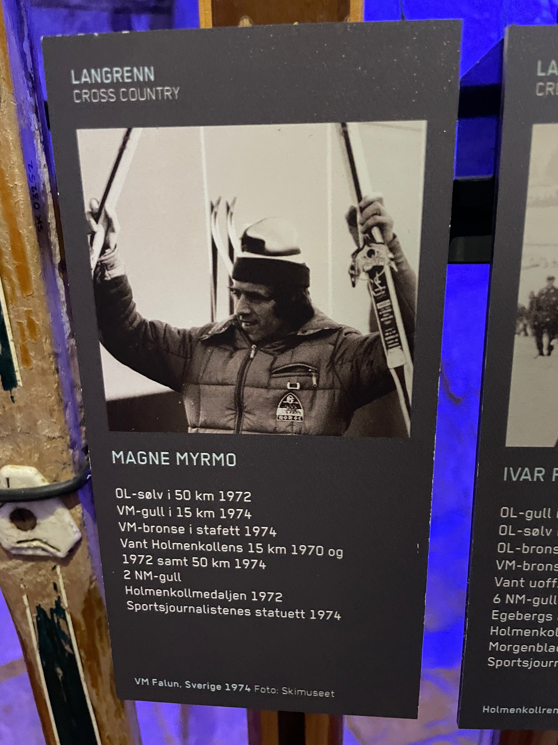 Did you know that Magne Myrmo of Norway as the last person to win a World Championship or Olympic gold medal on wood skis? It's true! In 1974, on a pair of skis very much like these. Don't believe me? Check out the last two pics, taken on a recent visit to the Holmenkollen skimuseet in Oslo.
