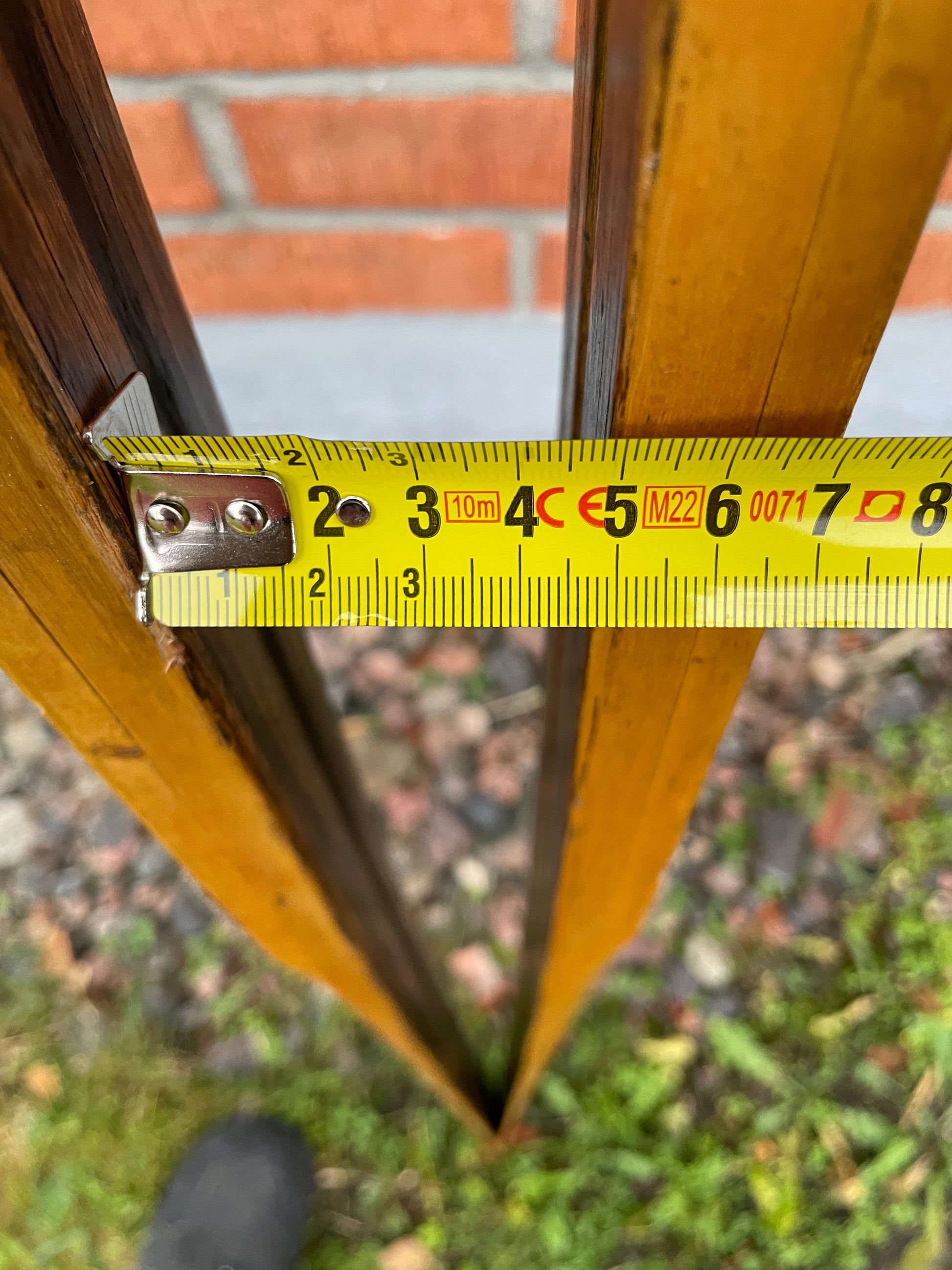 HIGHLY desirable birch base, hickory edge PELTONEN Erikoiskilpa ("Special Racing") cross-country skis. So why are these in the BARGAIN BIN!!!? Because they had a replacement strip of hickory glued on the tip of one of the skis, that's why. The story is that Moose was so excited to try these skis when he first acquired them way back in 2022 that he hopped right on them without looking at the bases, which had a couple of loose strips. One strip broke off and ended buried in the snow. He searched and searched, but that strip of hickory is STILL somewhere in a Finnish forest, location long forgotten.